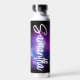Sie können das moderne Pinselskript für ihren Namen anpassen. Im Hintergrund befindet sich ein Foto eines schwarzen, marinösen, blauen, magentafarbenen, lila und lavendelfarbenen Fotos. Eine Wasserflasche Geschenk für sie.