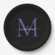 Einfache moderne, trendige Schwarz Lila Violet Monogram Moderne Feminine Script Name Paper Plate