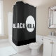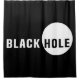 Black Hole Text und ein schwarzer Kreis oder eine schwarze Scheibe. Geschenke, Drucke, T - Shirt und andere Produkte für Spaß und gute Laune. Duschvorhang für schwarze oder dunkle Erzeugnisse