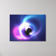 Ein mehrfarbiges Fraktal-Bild, das den Abfall erhitzter Gase in ein schwarzes Loch suggeriert, das auf einem sternenförmigen Hintergrund überlagert wird. Passen Sie Ihren eigenen Text an.