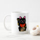 Das schwarze japanische Symbol - die glückliche Katze (alias Maneki Neko) soll böse Geister abwehren.