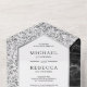 Schwarzes Marmor mit weißem und silberfarbenem Gli All In One Einladung