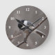 Schwarzes mit einer Kappe bedeckter Chickadee Runde Wanduhr