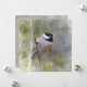 Das hübschste, chubby flaumige wenig Schwarze bedeckte den Chickadee mit einer Kappe, der auf einer Niederlassung gehockt wurde. Der kleine Vogel wird durch helle Zedern-Baumastmotive eingefaßt. Der Hintergrund ist mit subtilen Kreisen von bokeh weich. Eine sehr hübsche und konfessionelle neutrale festliche Szene und ein Gruß. Geboren von meiner eigenen Fotografie und von grafischen Entwurf.