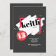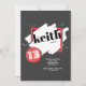Eine trendy Einladung mit einem modernen Rot, weiß auf schwarzem abstraktem Entwurf. Vervollkommnen Sie während jedes möglichen Alters. (<a href='https://www.freepik.com/free-vector/black-friday-background-with-red-details_1368304.htm'>Entworfen durch Freepik</a>). <br/><br/>Die Karte ist einfach, mit Ihrer Benennung, Schriftart-, Schriftartfarbe-, Papierformwahlen und Wahl von sechs Papiersorten besonders anzufertigen<br/><br/>Nicht genau was suchen Sie? Alle unsere Produkte können kundenspezifisch angefertigt werden, um Ihren Bedarf an keiner Extragebühr zu erfüllen<br/><br/>Treten Sie mit uns einfach bei heartfelthelper@gmail.com in Verbindung. <br/><br/>Koordinierenprodukte verfügbar: Fragen Sie uns einfach!