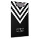 Modernes unbedeutendes Klemmbrett, das Sie mit Ihrem Namen personifizieren können, der weißes Zickzack Muster gegen einen schwarzen Hintergrund kennzeichnet. Groß für Büro oder Schule.