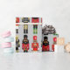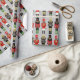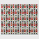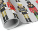 Dieses festliche Weihnachtsfeiertag-Umhüllungspapier enthält drei schwarze Nussknacker in ihrer Soldatenhaltung auf einem silbergrauen Hintergrund. Die Farben Rot, Grün, Gold und Schwarz sind perfekt für die Urlaubssaison, um Geschenke und Geschenke zu verpacken. Es den Ton für die perfekte Gestaltung des Urlaubs.