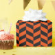 Ein Verpackungspapier, das mit einem schwarzen und hellen orangefarbenen Herringknochenmuster versehen ist. Passen Sie die hellorangefarbene Hintergrundfarbe einfach an.