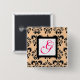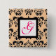 SCHWARZES PEACH DAMASK SQUARE PINK FUCHSIA MONOGRA BUTTON