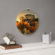 Schwarzes Pferd in einer schönen Morgengraslandschaft oder in der Abenddämmerung mit bernsteinfarbenen Gräsern, einem leichten Nebel und einem Bach oder Bachelor Liebhaber Wand-Uhr