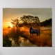 Schwarzes Pferd bei Sonnenaufgang oder Sonnenunter Poster