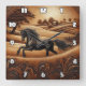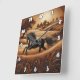 Schwarzes Pferd bei Sonnenuntergang im Grünen Quadratische Wanduhr