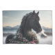 Schwarzes Pferd im Schnee mit Weihnachtskranz Kissenbezug