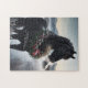 Schwarzes Pferd im Schnee mit Weihnachtskranz Puzzle