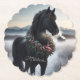 Schwarzes Pferd im Schnee mit Weihnachtskranz Untersetzer