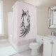 Schwarzes Pferd Kopf auf Rosa Duschvorhang