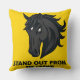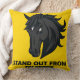 Schwarzes Pferd mit Text, das sich von der Masse a Kissen