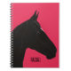 Dieses minimalistische Notizbuch bietet eine schwarze Pferdedarstellung und einen anpassbaren Namen. Das Pferd wird auf fuchsischem Hintergrund gezeichnet, und das ist ein tolles Geschenk für Damen, die Pferde besitzen oder Lieben.