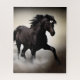 Schwarzes Pferd läuft in den Wellen am Strand. Dieses digitale Grafikdesign wurde durch das Anschauen des alten Films Black Stallion inspiriert.