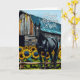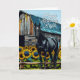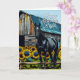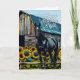 Personalisierte Geburtstagskarte. Hübsches schwarzes Pferd stehend vor einer alten rustikalen Scheune umgeben von Sonnenblumen Wandkunst.
