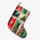 Genießen Sie Ihren Urlaub mit diesem Weihnachtsfest-Strumpf mit einem schwarzen Pferd und einem Weihnachtsbaum mit Schneeflocken auf einem abgespannten Hintergrund.