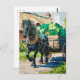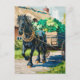 Schwarzes Pferd zieht eine Last von Kleeblättern Postkarte