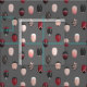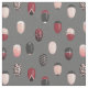 Graue Stoffe mit einem Muster von Nägeln in rot-rosa, schwarz und bordeauxfarben in verschiedenen Stilen gemalt, wie Silberherzen, Fasern, Streifen, französische Spitzen, geometrische Designs und Leopardruck.
