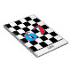 Schwarzes Schachbrett mit personalisiertem Namen u Notizblock