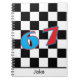 Dieses personalisierte schwarze Schachbrett-Trend-Notizbuchdesign 67 enthält fett gedruckte rosa und blaue Ziffern auf einem spielerischen Schachbrett-Hintergrund. Perfekt für Kinder, Schüler und Jugendliche, die lustige, individuelle Designs lieben. Ein helles 67-Nummerndesign fügt Flair und Spaß hinzu. Personalisieren Sie es mit jedem Namen.