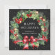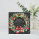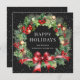 Benutzerdefinierte schwarze Visitenkarten mit einem Aquarellkranz aus roten und weißen Beeren, heiligen, Nadelbäumen und Zweigen auf schwarzem Hintergrund. Diese Aquarellkarten können Sie ganz einfach mit Ihrem Firmennamen personalisieren.