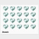 Schöner, herzförmiger Aufkleber mit silberweißer blüh-Schriftrolle auf Aqua / sanft blaugrüner Meeresglasfarbe, perfekt für die Verzierung von Scrapbook-Seiten oder als Umschlag Aufkleber für Hochzeiten, Brautpartys, Babyduschen und vieles mehr.