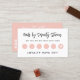 Stilvolle Rosa-, Weiß- und Schwarz-Loyalitätspuntkarte mit Ihrem Firmennamen in einem charmanten Skript, und Ihre Social Media Handles und Kontaktinformationen auf der anderen Seite.