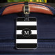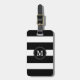 Ein sehr eleganter stilvoller Entwurf mit Schwarzweiss-Streifen mit einer Initiale auf ihr. Ändern Sie den großen Buchstaben "M" zur Initiale Ihres letzten Namens für einen kundenspezifischen mit Monogramm Blick. Fertigen Sie mit Ihrer persönlichen Information über jede Seite besonders an. Groß, damit jede mögliche Größentasche leicht identifiziert Ihr Gepäck beim Reisen.