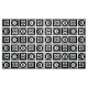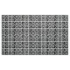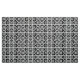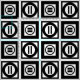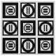 Stilvolles Gewebe kennzeichnet ein mutiges geometrisches Muster des Wiederholens der schwarzen Quadrate mit Raum zwischen ihnen. Die diagonal entgegengesetzten starken Quadrate jedes enthalten einen dünnen schwarzen Kreis mit einem starken Gleichheitszeichen nach innen. Demgegenüber enthalten die dünnen Quadrate jedes stark schwarz den diesen Kreis Touchs die Ränder des Quadrats mit einem dünnen vertikalen Gleichheitszeichen nach innen. Groß für Wohngestaltung.