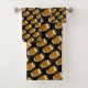 Ist hier ein großes Badtuch-Set, das die braunen und weißen Fußball kennzeichnet, die durch die Luft fliegen.
