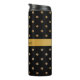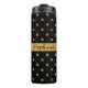 Chic-thermische Trommel getan im Schwarzen, wenn der goldene Glitter Polkapunktmuster schaut. Ein Goldband, Läufe über der Mitte der Trommel, mit dem kundenspezifischen schwarzen Text bereit zu personifizieren. Große Geschenkidee für sie.