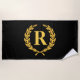 Schwarzes und Goldlorbeer-Kranz-Monogramm Strandtuch