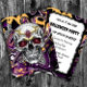 Einladung zum personalisierten Halloween-Party. Schwarzer und lila Zuckerschädel Halloween Postkarteneinladungen.