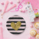 Schwarzes und rosa Streifen-Goldherz Pappteller