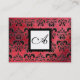 SCHWARZES UND ROTES SILK-DAMASK-SQUARE-MONOGRAMM VISITENKARTE