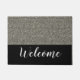 Eine moderne willkommene Fußmatte mit silberner Glitterblickdruck- und -willkommenstypographie auf einem schwarzen Hintergrund. Macht ein großes Geschenk für weds eben und neue Hausbesitzer als Housewarminggeschenk. Sie können Ihre alte Matte der vorderen Tür durch die noble silberne Glittermatte auch ersetzen!