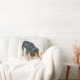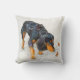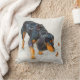 Schwarzes und tan Cocker spaniel mit Kissen
