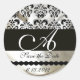 SCHWARZES UND WEISSES SILK-DAMASK-KLOSTEMONOGRAMM RUNDER AUFKLEBER