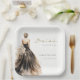 Schwarzes Weiß Wasserfarbe Hochzeitskleid Brautpar Pappteller