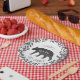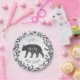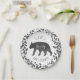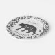Der Babyduschen-Papier-Teller, der eine Illustration eines Watercolor kennzeichnet, inspirierte die Silhouette des schwarzen Bären, die durch Schwarzweiss-Laub umgeben wurde. Personifizieren Sie den Text.