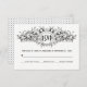 Schwarzes, weißes, blumengeschmücktes Wappen Hochz RSVP Karte