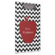 Ein Klemmbrett für die Lehrer, die ein Zickzack Schwarzweiss-Muster kennzeichnen. Front kennzeichnet eine rote Apfelillustration. Personifizieren Sie mit Ihrem Namen auf Apfel.