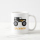 Eine Tasse, die einen schwarzen Monsterwagen mit Flamme und Schädel zeigt. Sie können der Tasse Ihren Namen hinzufügen, um sie zu personalisieren. Ideal für Leute, die Monster-LKW-Fans sind.