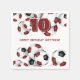 Diese Fußball-Geburtstagsparty-Servietten sind vollständig anpassbar und enthalten Gruppen von Maronen-, Schwarz-Weiß-Fußball-Bälle am oberen und unteren Rand - personalisieren Sie mit Ihrem eigenen Text - von katz_d_zynes