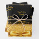 Elegantes, klassisches, glamouröses und feminines Party-Packpapier. Ein eleganter schwarzer Hintergrund mit goldgelbem Glitzer und Imitaten. Mit einem goldenen Bogen und Band. Mit dem Text: Happy Birthday, golden Buchstaben. Personalisieren und einen Namen hinzufügen.